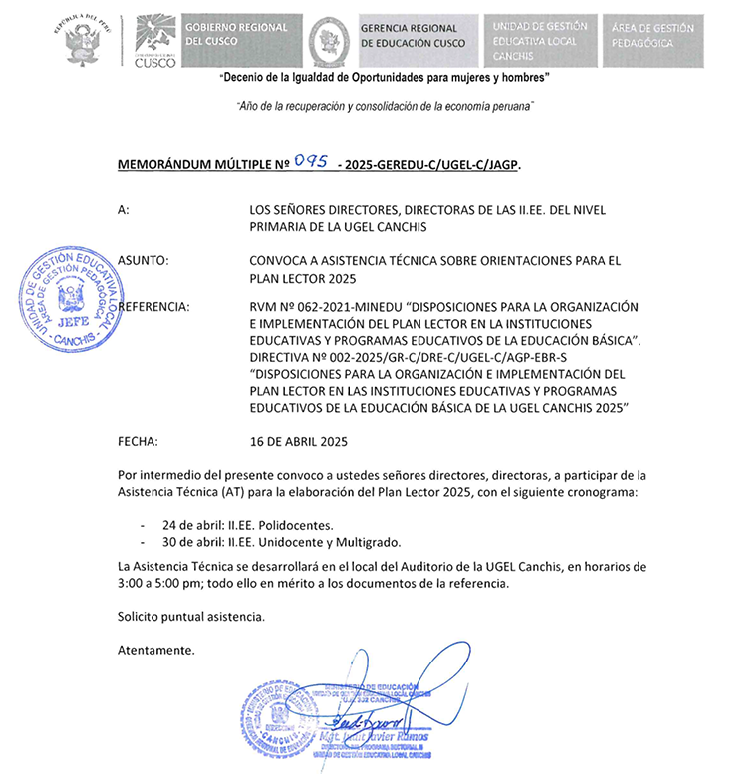 COMUNICADO N° 011-2025-UGEL CANCHISPresentación y recepción de postulantesResolución Viceministerial N° 098-2025-MINEDUEstimado/a docente postulante del proceso de encargatura de profesores en las ......