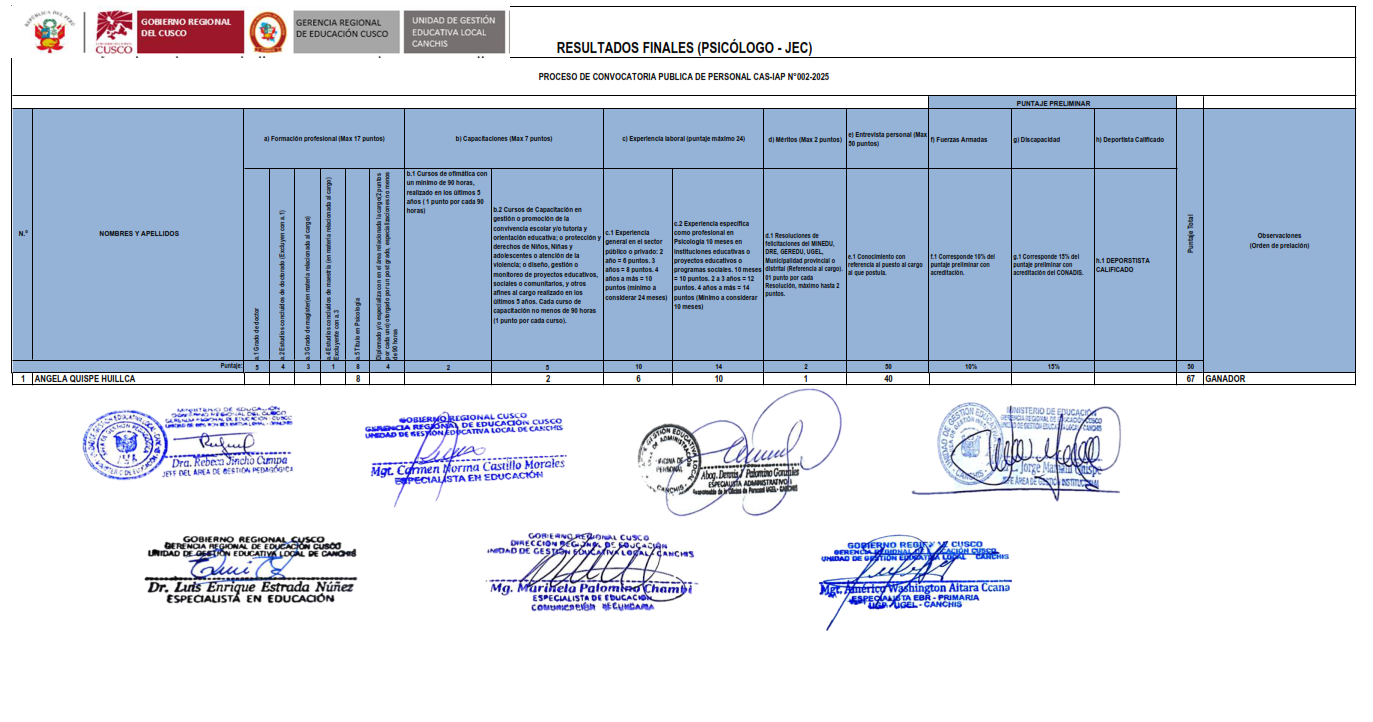 Convocatoria para la contratación administrativa de servicios de tres (03) ESPECIALISTAS EN PROCEDIMIENTOS ADMINISTRATIVOS DISCIPLINARIOS EN LA UNIDAD DE GESTION EDUCATIVA LOCAL CANCHIS....